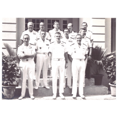 19. 1988/1992 Mes fonctions: directeur de l'enseignement maritime, directeur des études (EMF/OSM). L'école navale est en pleine révolution, la commission des titres d'ingénieurs a demandé que l'on revoit les programmes. Ce qui passe par un développement des laboratoires , de la recherche et de la publication. Les échanges avec d'autres écoles d'ingénieurs s'intensifie. les élèves doivent présenter un mémoire de fin d'études dans les domaines de la recherche de pointe. Nous les pilotons dans leurs travaux dirigées chapeauté par le "directeur scientifique et de la recherche" qui est un professeur des universités. Nous faisons partie des jurys de soutenances, d'élèves de l'Ecole Navale et d'autres écoles d'ingénieurs. C'est un exercice particulièrement enrichissant.