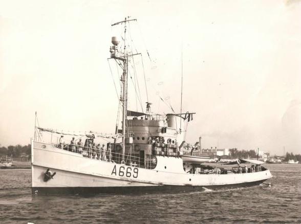 - Amarré à Brest à proximité du Richelieu dans les années 60, ses espaces sont utilisés comme salles de cours pour l'école de manoeuvre.