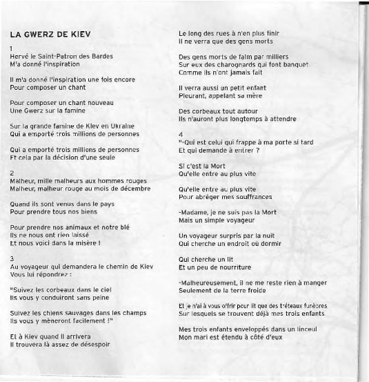 LA GRANDE FAMINE DE KIEV (HOLODOMOR) COMPLAINTE CHANTEE PAR DENEZ PRIGENT EN 2003