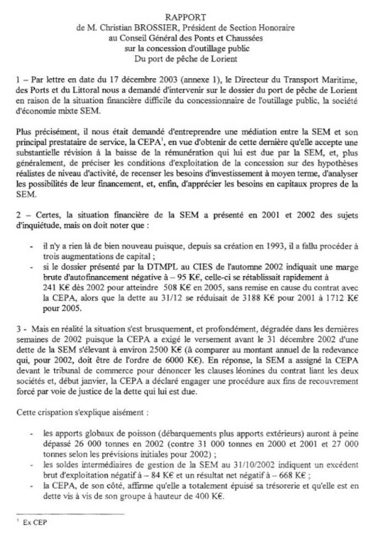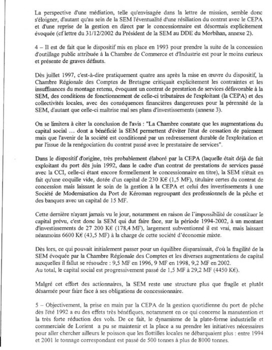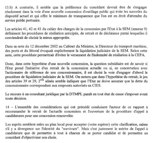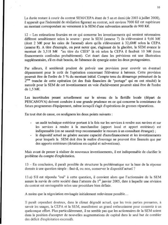 Le rapport étant défavorable à la SEM (président Benoish) il ne sera jamais publié. En 2004 Le PDG de la CEP sera licencié ainsi que le directeur du port Jean Le Bot et ses proches collaborateurs.